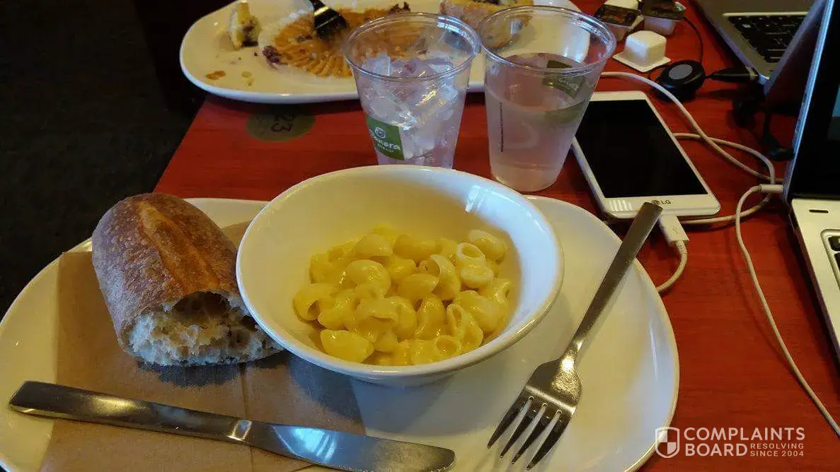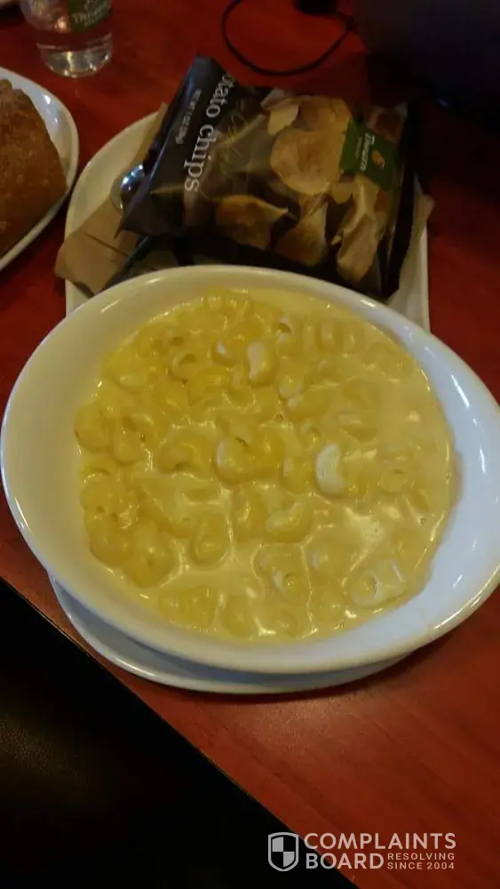 I'm 16 but I earn my money. I don't earn much but at least I have some, right? So I go to panera early this morning and I order a small mac n cheese (only two sizes a half and a full or if you prefer a small and a large) with a french baguette. I have eaten here many times before and have been satisfied but when my dad brought me the plate and sat down...
