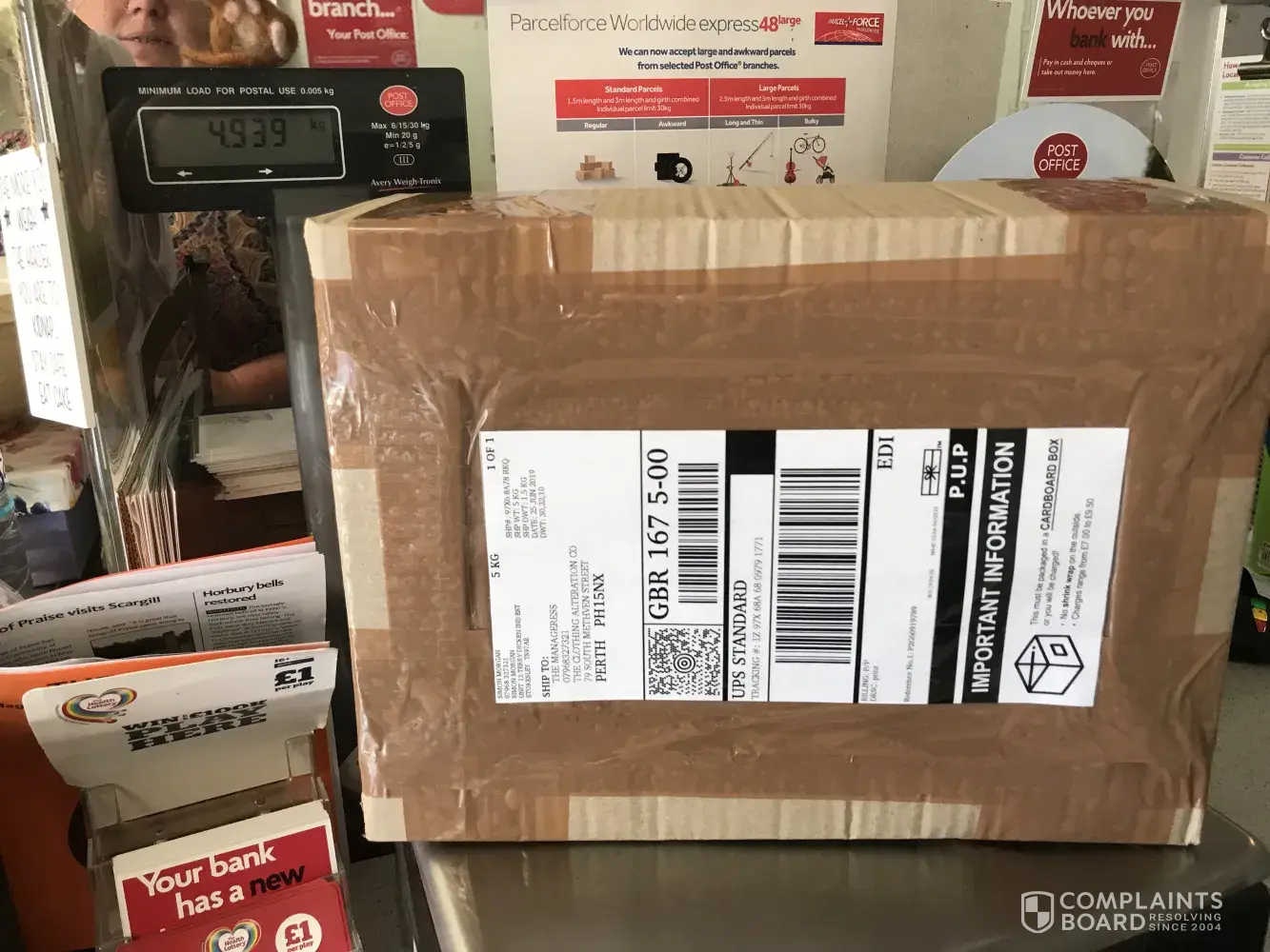 Ref- P2G60919789 : this parcel was sent to a shop in Perth my company has been supplying this shop for twenty years sending this exact parcel roughly every three months.