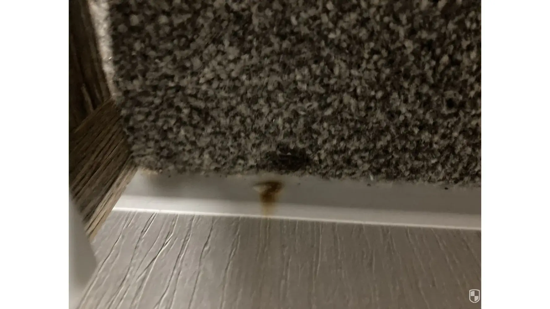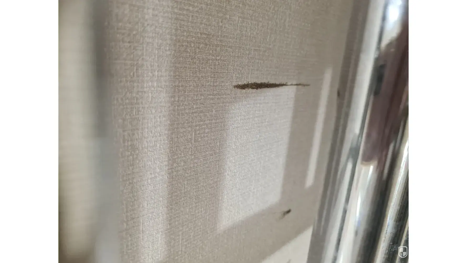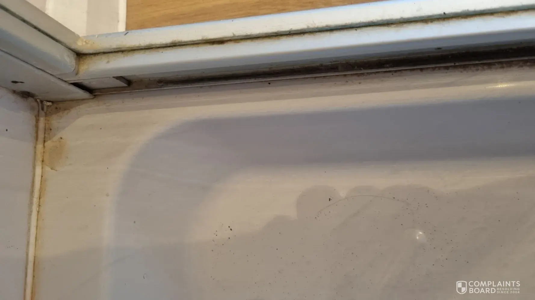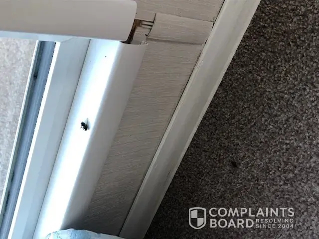 There was dead flies on the carpet and window seal, bits missing from the corners of the window frames and what looked like someone’s fingernail under the tv unit. (Photo 4&5)