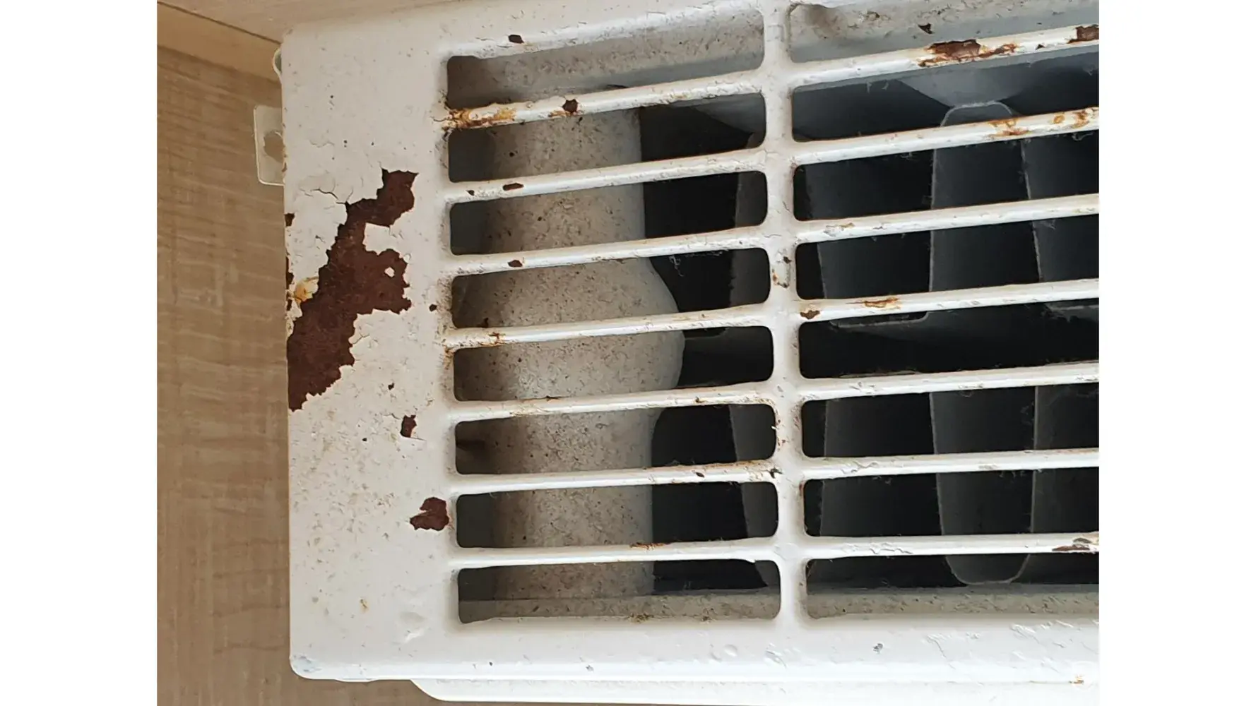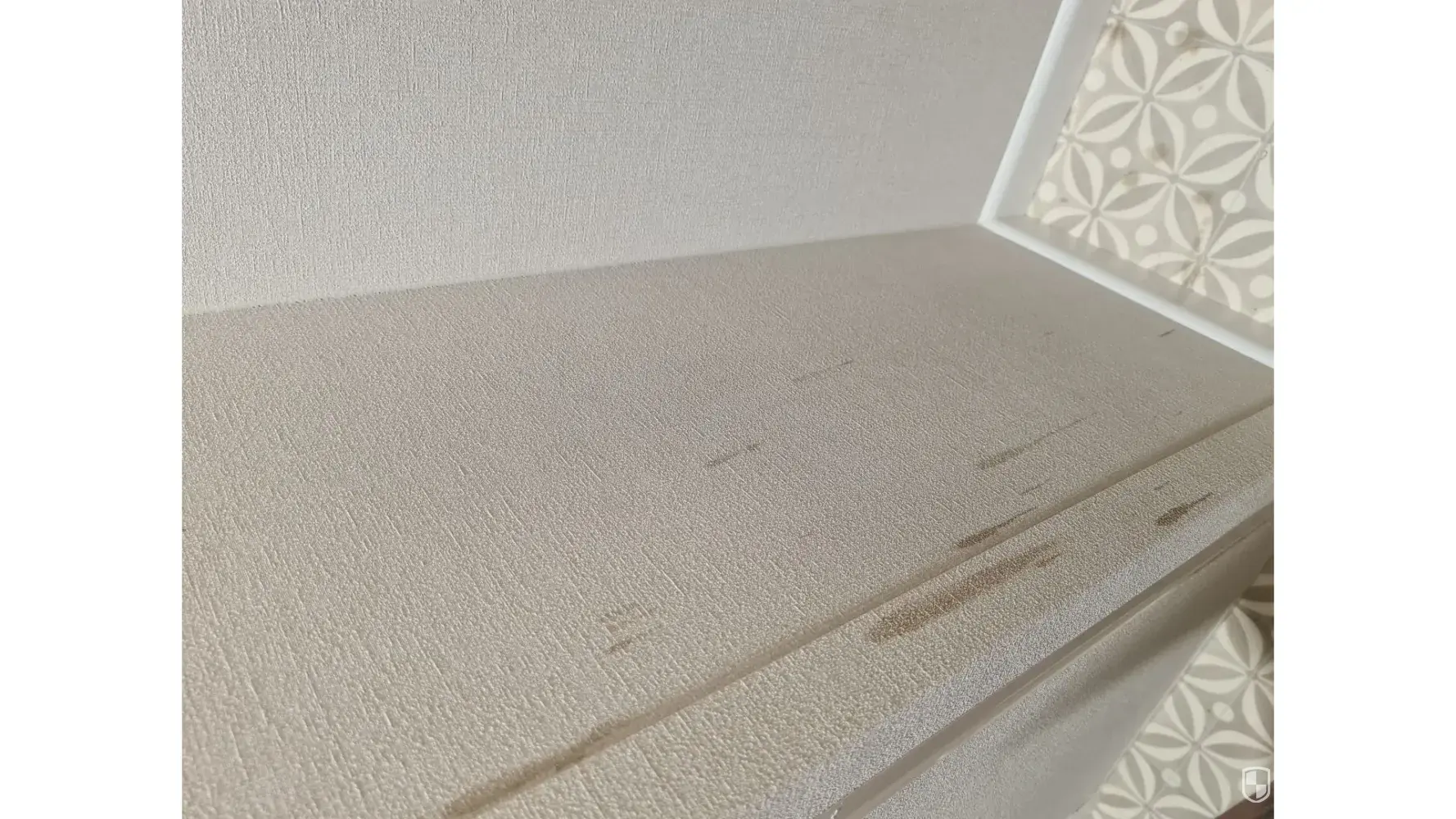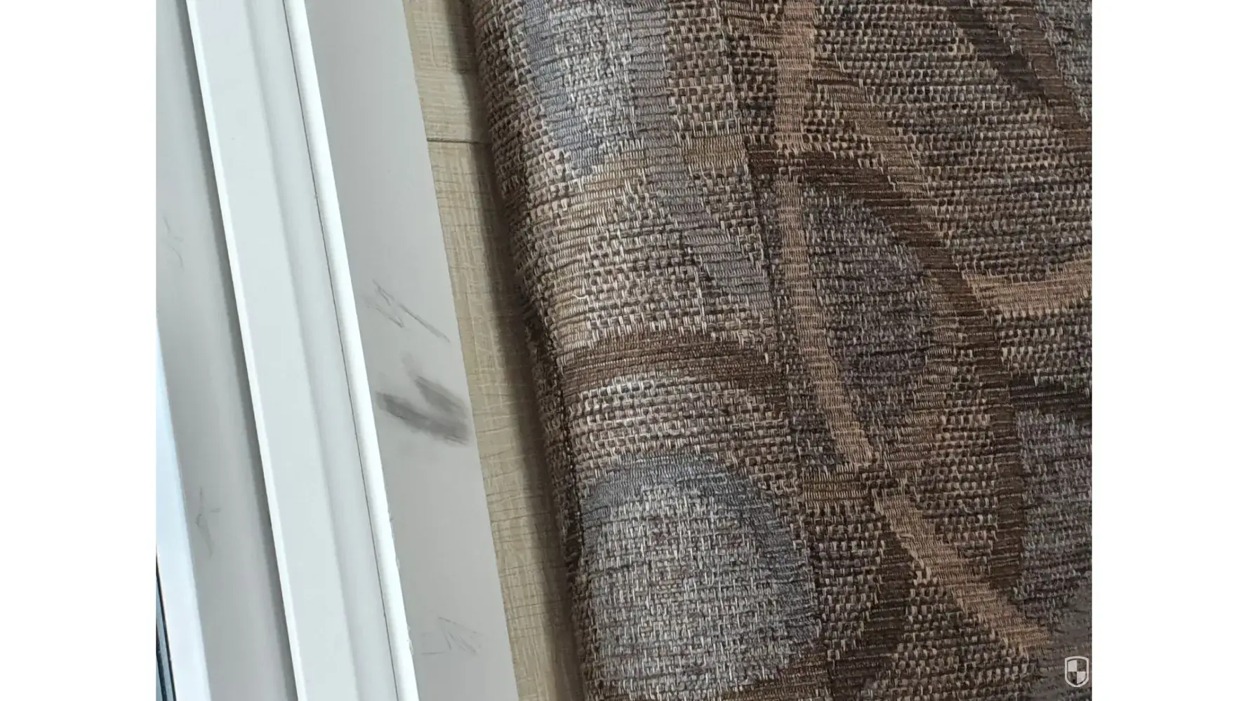 There was dead flies on the carpet and window seal, bits missing from the corners of the window frames and what looked like someone’s fingernail under the tv unit. (Photo 4&5)