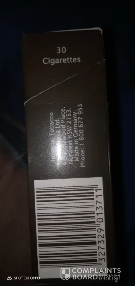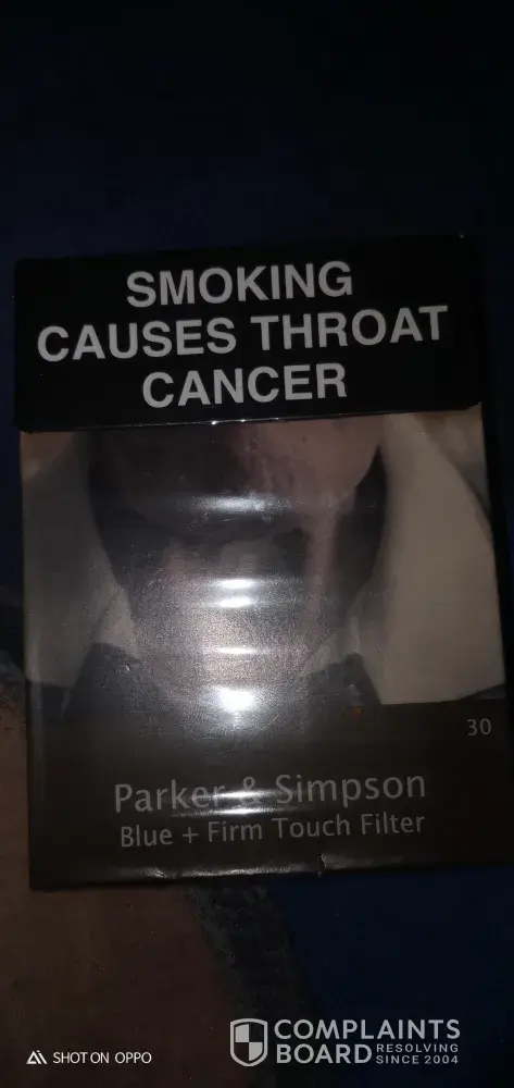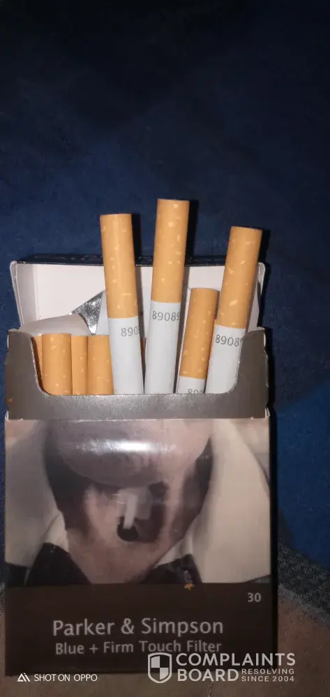 Just wanted to write a complaint about your product Parker and Simpson blue 30 pack that I purchased at a 7/11 in the suburb of Bonnyrigg Sydney Australia. I've been smoking for over 10 yrs now and I quite like your product being in the affordable range and usually the quality being great, but this time I noticed your product made me feel physically sick, with symptoms I've never experienced quite before, my arms and legs and overall body felt extreme levels of pain and aches like constant shooting pain that doesn't go away would last up to two days until I have another cigarette and it would come straight back which is when I discovered something in your ciggarette is the underlying cause to the throbbing pain and extreme fever and weakness I keep getting after each cigarette smoked. I'm not sure if I've just been unlucky and I've received a contaminated packet perhaps but in the future you guys need to review what yous are putting out into the public as I wouldn't wish the pain and discomfort I was in to anyone else as it almost felt as if I was fighting a bad case of some sort of poisoning. The marking on these cigarettes are 89089 and packet serial number [protected].