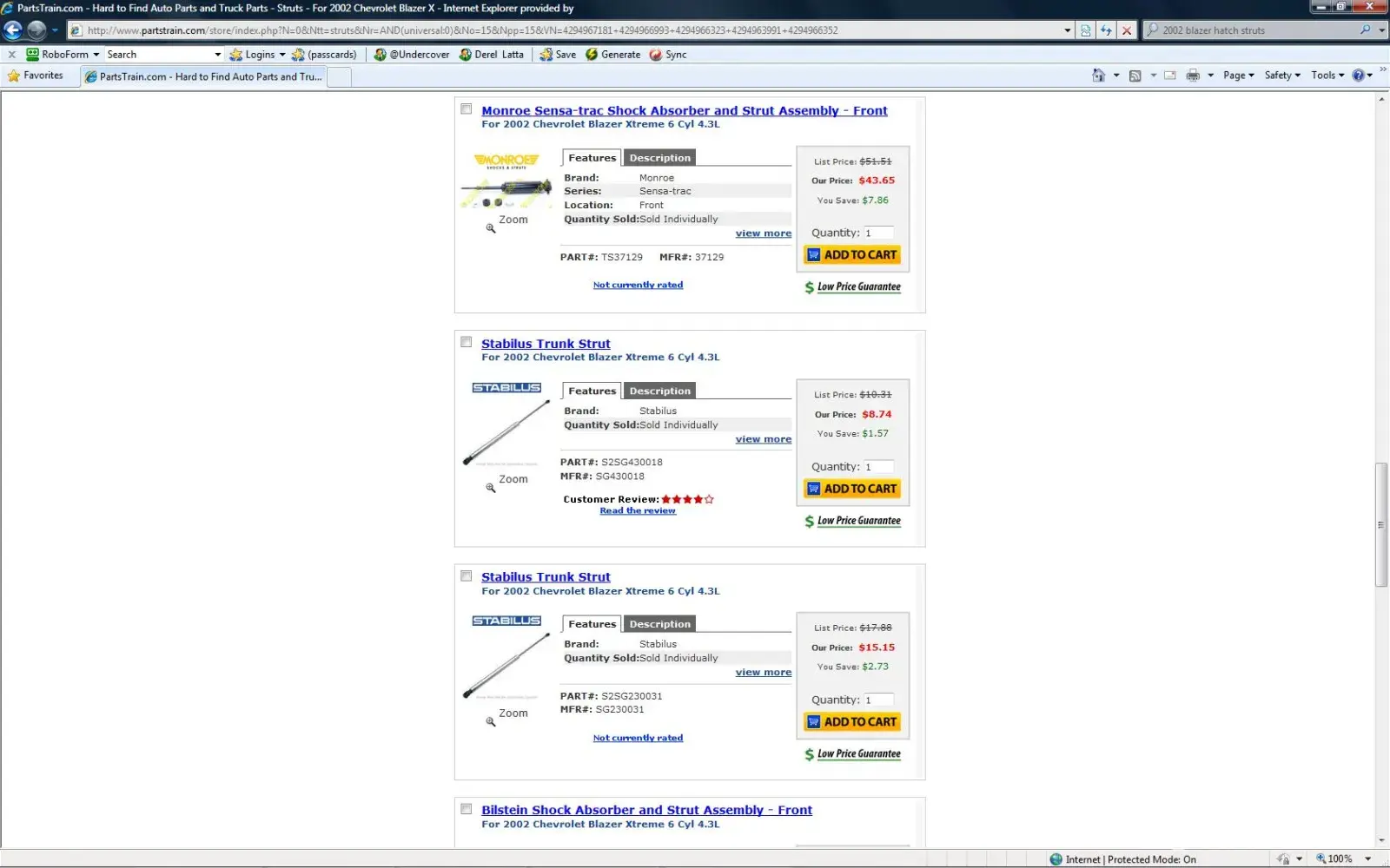 Their own website had the wrong part number. Struts don't fit. I sent them a copy of the page that showed the error. They say they aren't receiving emails, so I tried to call and get put on hold and dropped. That's how they handle returns.