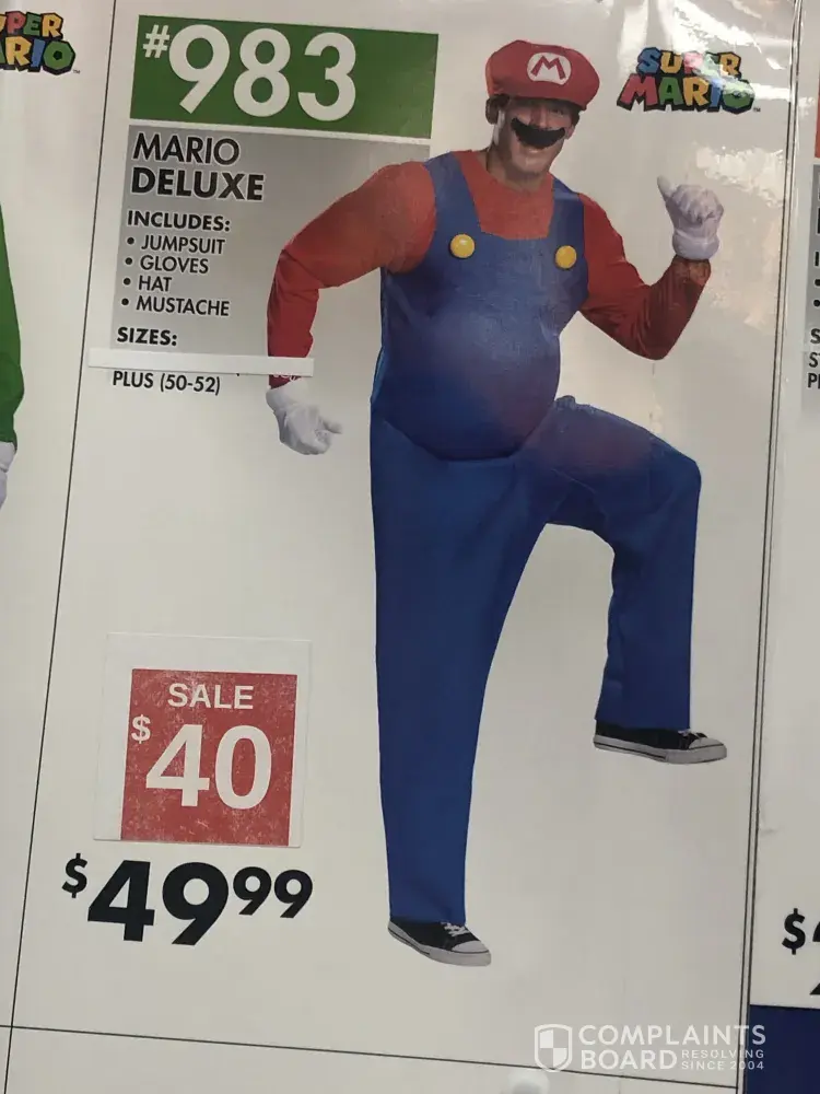 I bought a Mario Brothers costume on October 30th and when I opened it on the morning of the 31st, it was missing the hat, gloves, and mustache. I double checked the package and it said it was included. I checked the photo I took of the wall where you pick the costume and IT said that the accessories were included. When I brought it back on the 2nd (the...