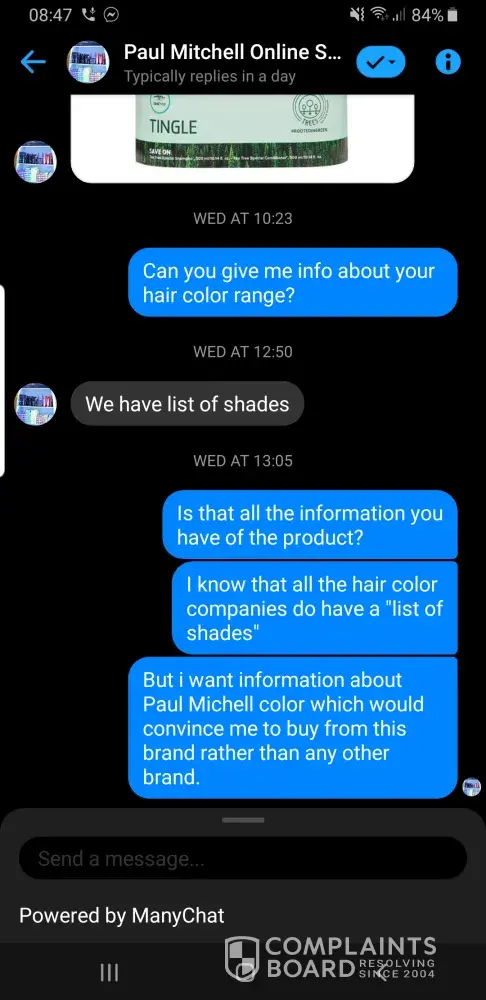 I live in Pakistan and messaged on Paul Michelle's facebook page to get information about the brand's hair color range. But I was provided with no help and information. Please note that this facebook page is authorized by Paul Michelle and the way they are handling clients is redlecting very badly on your brand. Please take action. Thank you