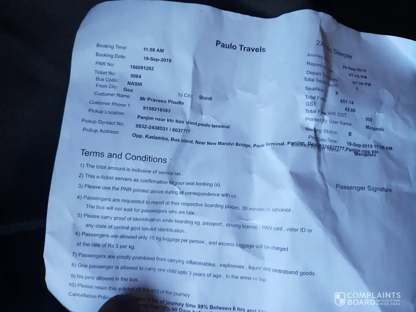 I am writing to complain about a ticket (pnr- P141508225892/IDR) which i booked through red bus.com in PAULO TRAVELS from pune to mahabaleshwar on 15th august, 2015. I thought it would be a nice trip, however, it have been my worst experience ever. I had so many problems with this journey.