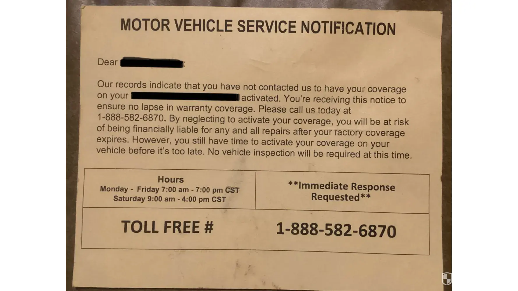 Around the 1st of September, I received a very official looking Final Notice of my auto warranty expiring