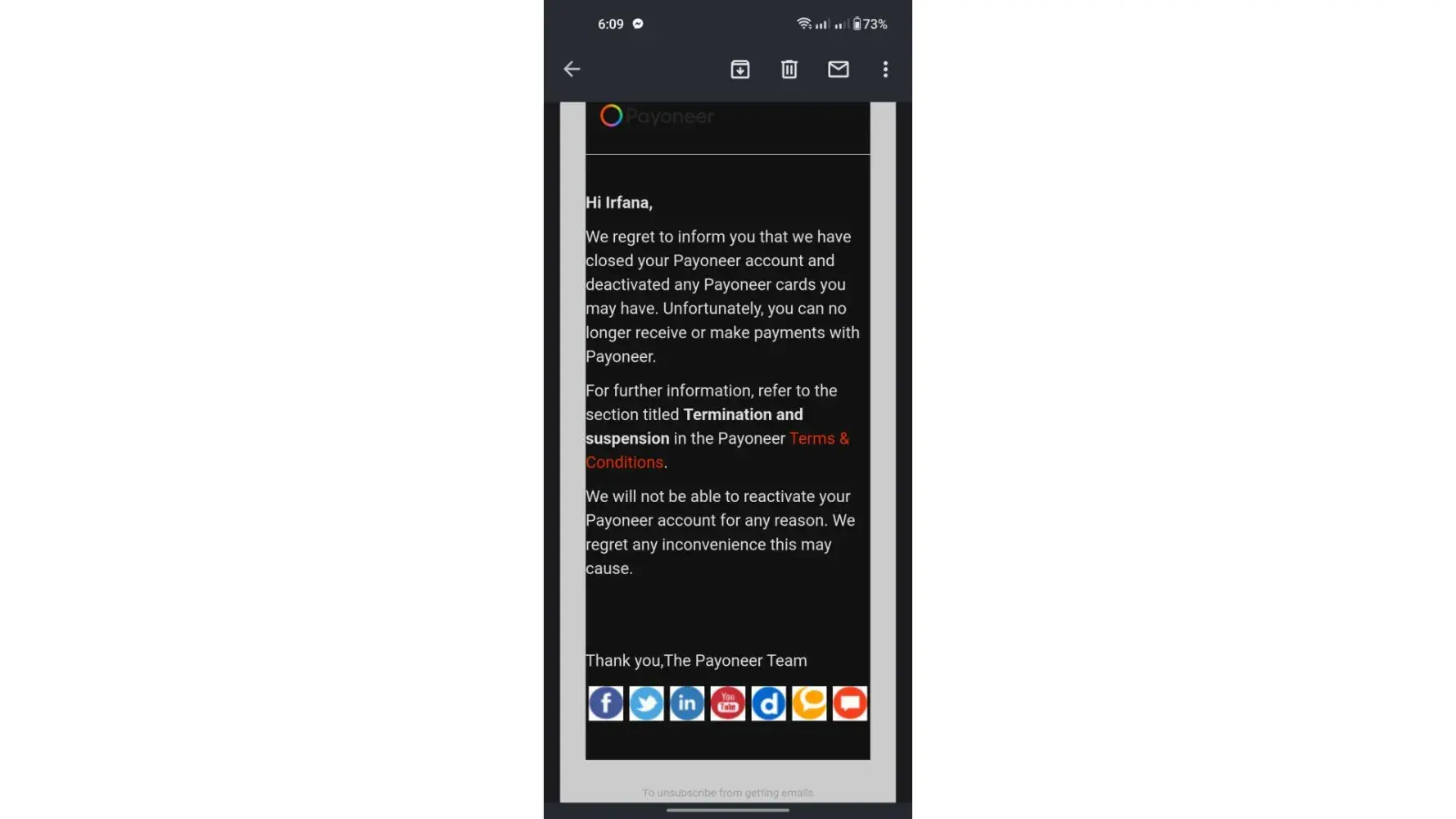 Payoneer blocked my payoneer account and steal my money $600
