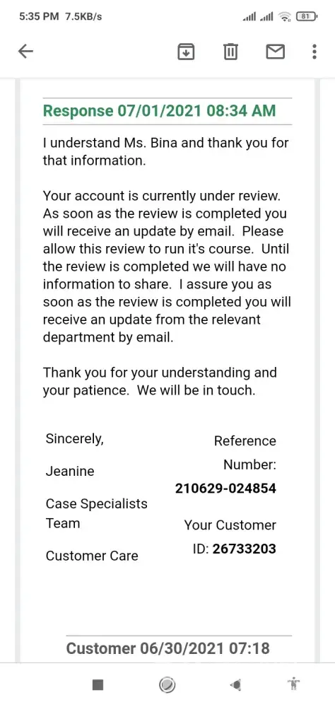 I reply her explanation I did not. Then she said she can not give ay guarantee for money recovered, reverse or refund. So, this her message clearly visible they wont do anything and will not give me refund as Unauthorized transaction made. They were determined how to cheat, scam with me.
