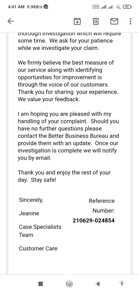 Today Jeanine email me investigation has been completed and they can not give me refund or none money recovered.
