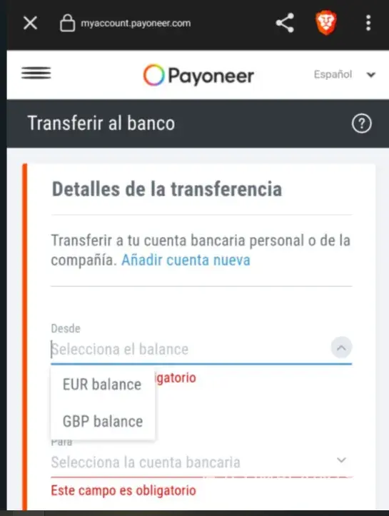 After activating my card, I decided to transfer the funds in my Skrill account back to my Payoneer account for easy access via Mastercard.