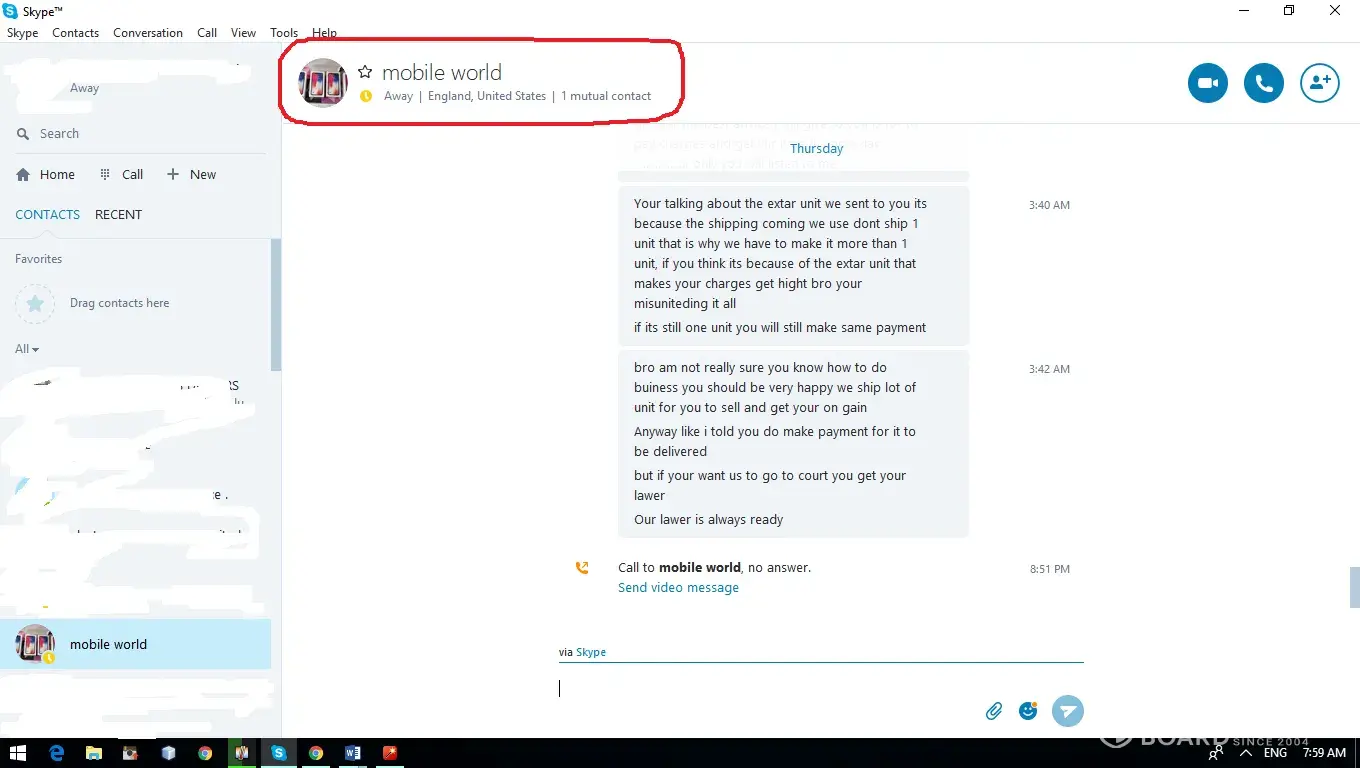 This guy probably goes under many names, but in this case, he portrayed himself as;tomas martinez with mobileworld company that he claimed was us company. I would guess he is not really American, but Chinese, judging by his bad grammar.
