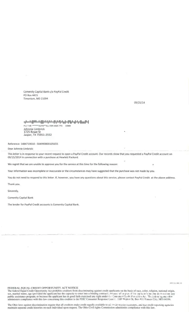 1) I received a bill from Paypal Credit that totally stumped me. I made a fraud call to them. Later I examined my American Express account registered with Paypal only find that they didn't put the charge on my registered American Express card, but opened a Paypal Credit account. The offer for extended pay, which I've used in the past, previously, stretched out payments to the American Express account that I have on file. I just lost 2, 300 American Express points and have a new credit company that I don't want. When I called and asked why I didn't see a notation on my credit report about opening a new creditor, I was told that they don't report to credit bureaus. That way they stay under the radar in opening an account for you...it's secret. When I tried to find out how this happened all I got was, "Have a good rest of your day." 2) Additionally, somehow they opened an account for my 91 year old mother who is in a nursing home and makes no purchases. They sent her a bill for an airline purchase that she obviously didn't make. I am cancelling all dealings with Paypal and Paypal Credit.