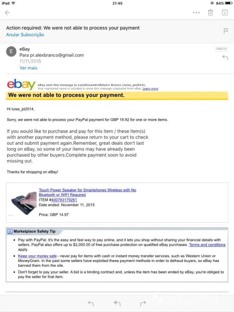 Hi, my name is Stephane and I received there are few days, an email (in French) with a button "Activer" to active my PayPal account by clicking on it, a thing that I do not made. Please check the proof join with this message.