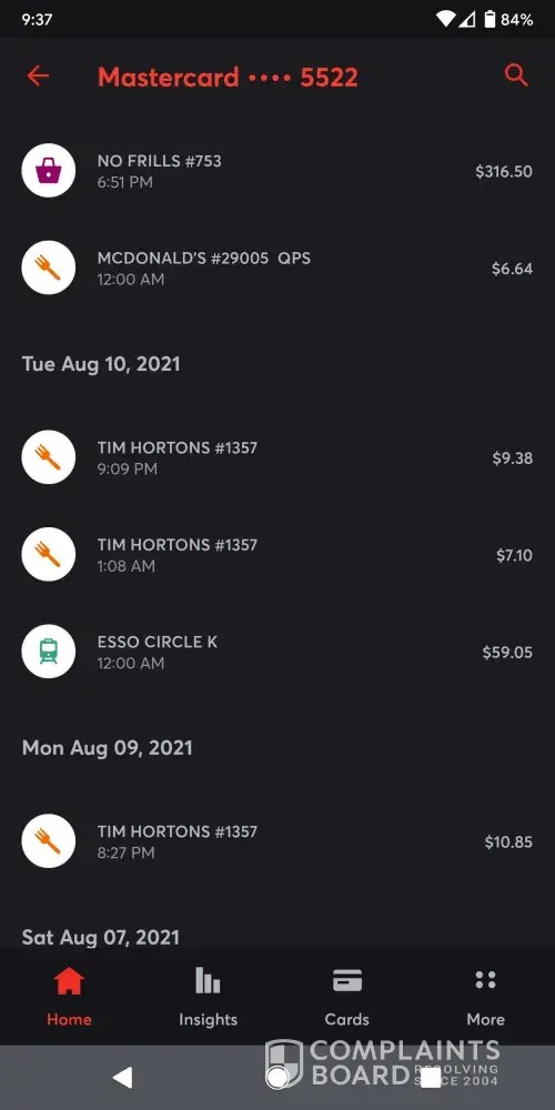 Read full complaintPC Financial card