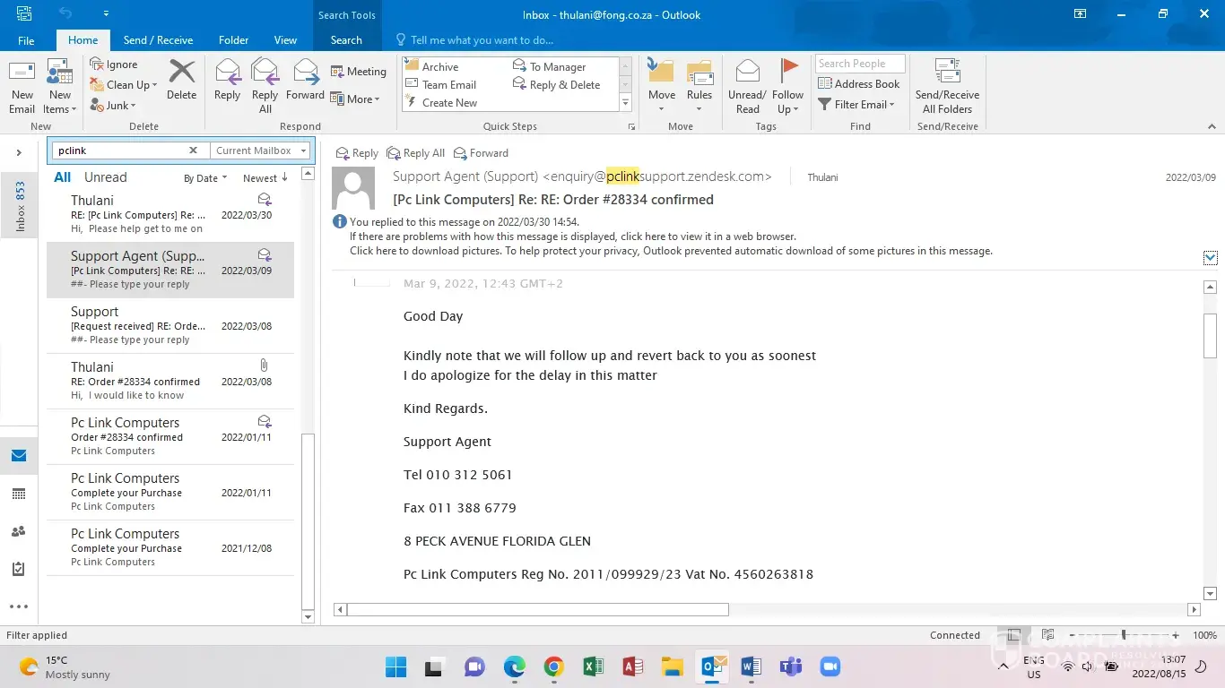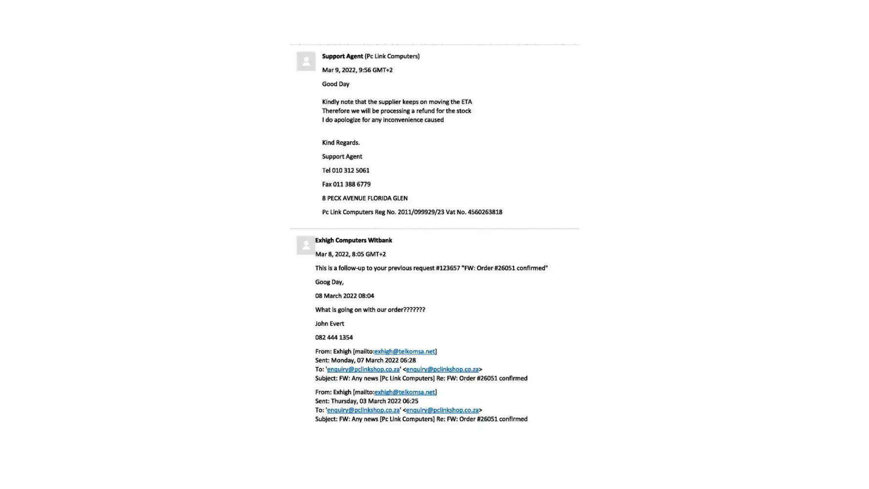 We have tried to email them on [protected]@pclinkshop.co.za / [protected]@pclinkshop.co.za as well as [protected]@pclinkshop.co.za