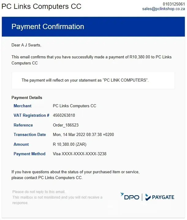 If you have any questions, reply to this email or contact us at [protected]@pclinkshop.co.za