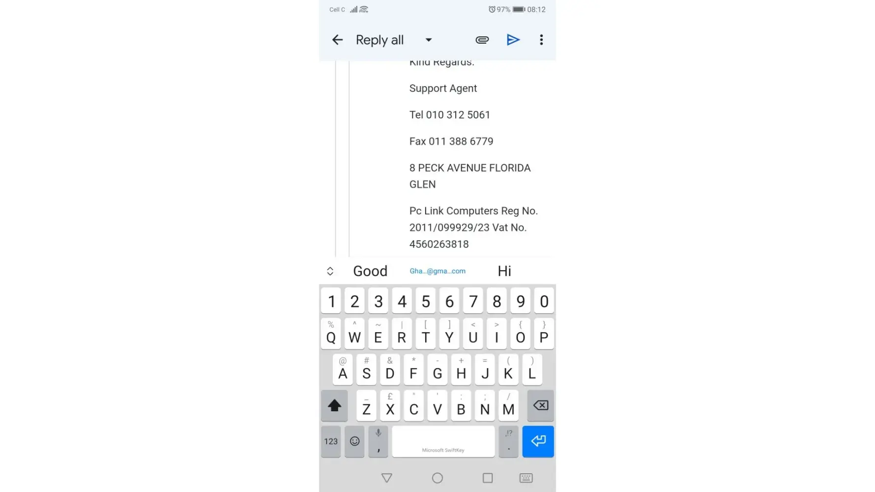 The 29 March 2022 I received a email from Garth Botha (Garth Botha (Pc Link Computers) Mar 29, 2022, 8:34 GMT+2