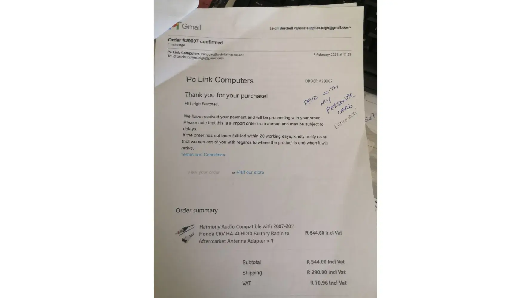 I also ordered products worth of R50,320 in February. just got refunded on the 15th of July, you should forward your complaints to pclinkshop.co.zaa@gmail.com