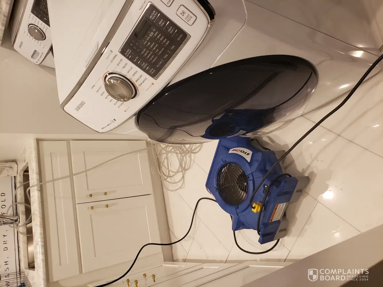Yesterday we had our new dryer serviced for the third time. The service tech did not have the parts need to fix our machine and in addition tried to blame our issue on a dryer vent blockage on a brand new construction home. Also he tried to push a service company to come clean our dryer vent. Later that evening my wife did a load of laundry only to have our washer machine leak and flood out our laundry room foyer and garage. We had to have a remediation company come to clean and dry our our down stairs. It was determined that the service technician while moving the washer and dryer knocked out the drain for the washer machine which caused the flood. We need PC Richards insurance information to make a claim for the damage that was caused by PC Richard's negligent service technician.