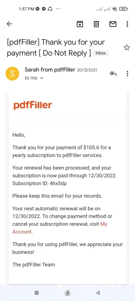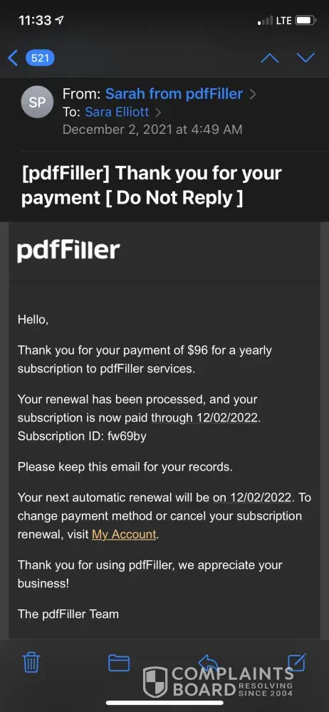 I had a payment come through my PayPal account for $96 to PDF Filler on December 2, 2021. I did not authorize this payment. I looked it up and I have no idea what this company is. I contacted PayPal the same day and told them the situation. They messaged me back the next day and said that the charge was not unauthorized. I researched and found many others have had the same issue with this company. Please let me know what steps I need to take next to get my money back. Thank you.