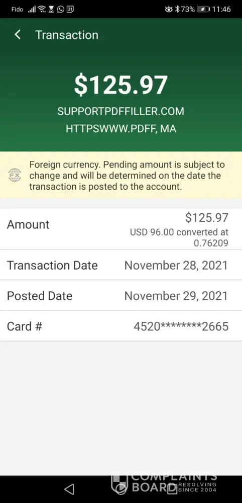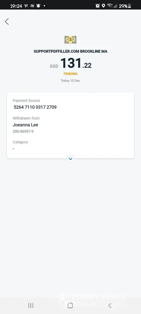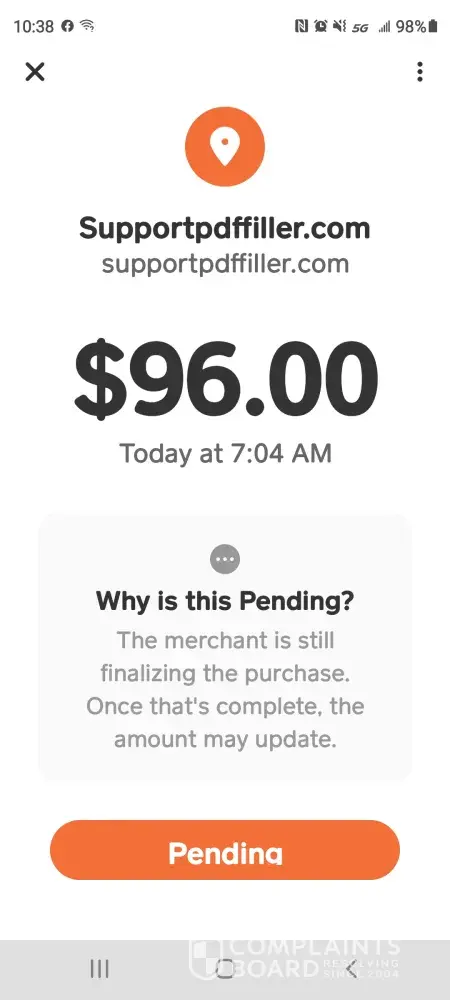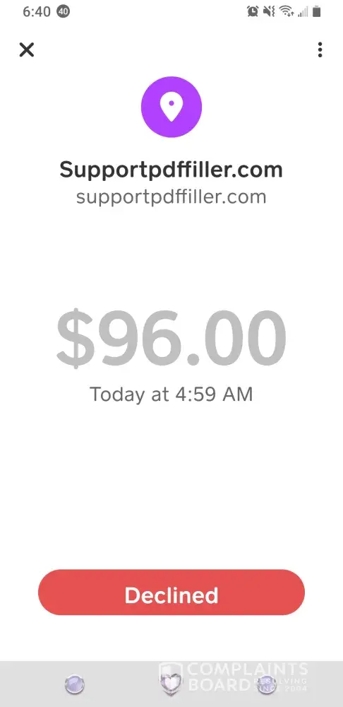 This CKO SupportPDFFiller.com just took an unauthorized payment from my cash app card in the amount of $102.96. No such services did I agree to from this CKO Support company or scam business? I never agreed nor did I authorize that person or company to take my money. And I want my money back on my card. No communication was attempted with me over this unauthorized transaction.
