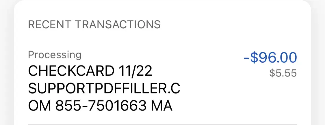 I only used PDFFiller with the free trial and now I got a $20 charge to my account that I just saw. I haven't subscribed to any types of subscriptions while using this application so I'm not sure why I just got a charge all of a sudden. I would like a refund pls since it has in turn made my account negative. If you could email me or text me at +[protected] I would appreciate it.