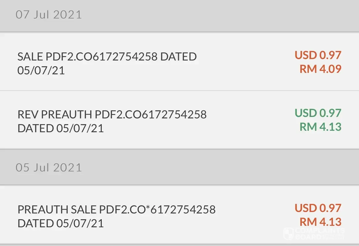 Attached is the evidence of the transaction. Basically PDF Filler charged my card for Pre-Auth fees TWICE. No notification whatsoever from their part. I am aware that to everyone this may be a small amount but I am a struggling college student and every cent counts to me.
