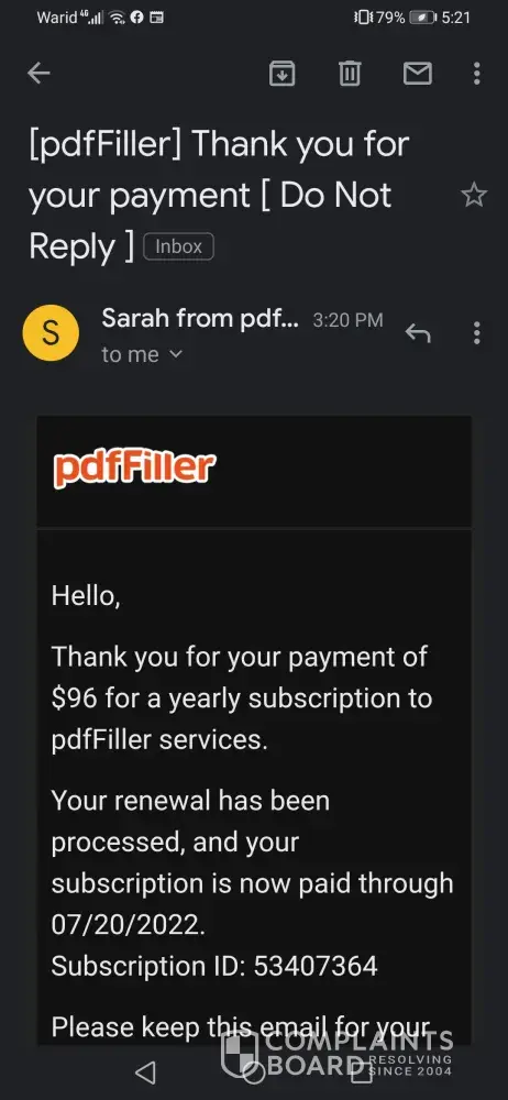 On 2nd July PDF filler has automatically subscribed $96 with my credit card credentials. I have not opted for. I used it only once on 2nd June. I am a volunteer doing service to people and I do not use PDF filler at all.