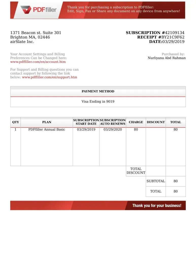 PDFfiller's subscription plans are generally transparent, but be sure to review the terms and conditions before purchasing to understand any additional fees or charges that may apply.
