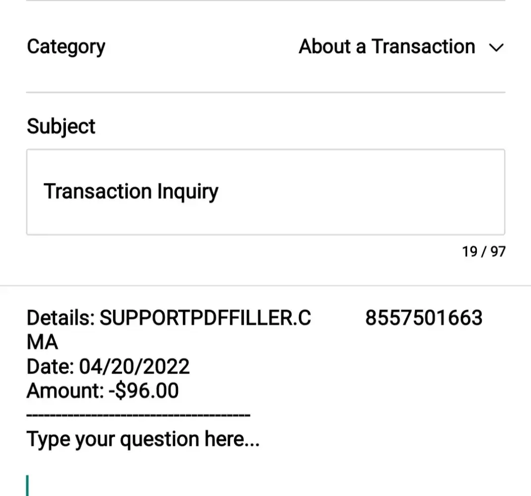 On May 10, 2022 I received a charge on my capital One MasterCard in the amount of $96 listed under support pdffiller.com. I have not purchased this software nor authorized any payment on my credit card. Please issue me an immediate refund.