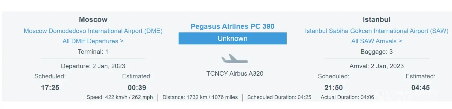 I took the flight no PC 1164 on Friday 23rd December at 23:40 from London Stansted to Istanbul Sabiha Gokcen.