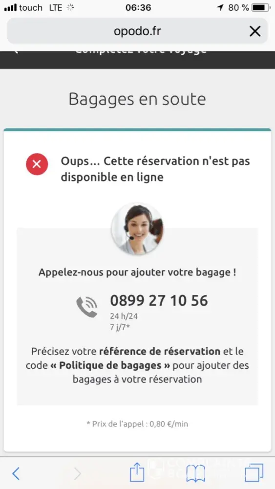 impossibility of booking an extra luggage prior to my flight