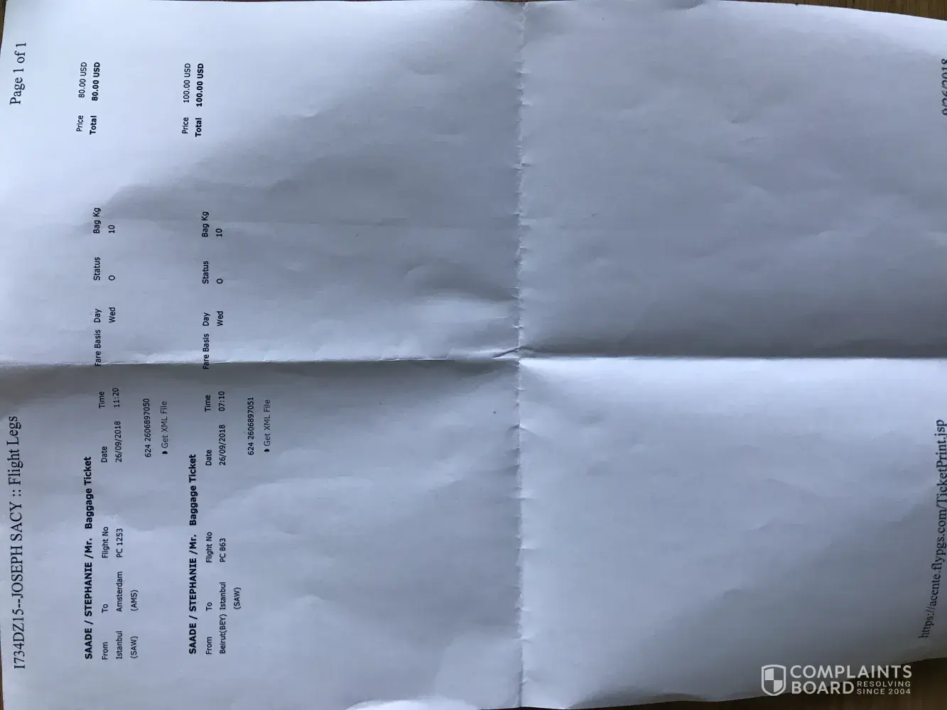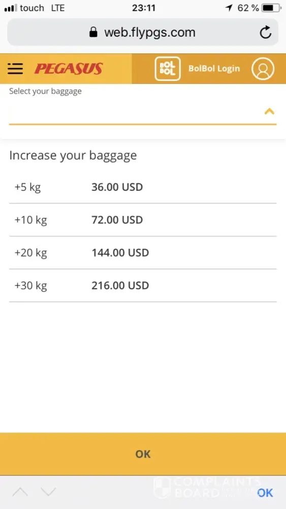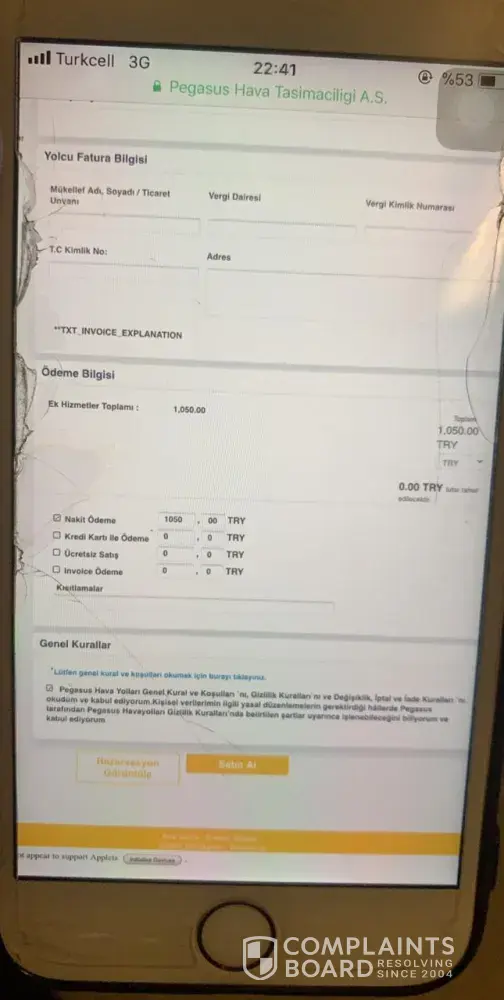 complaint for ticket and seat (pegasus airlines)