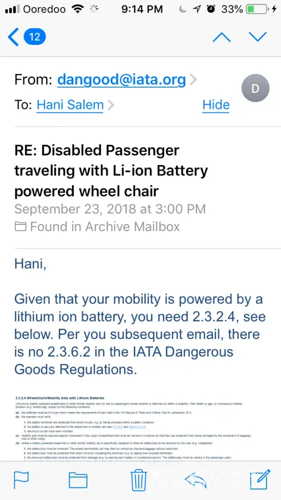 not allowing my battery wheel chair