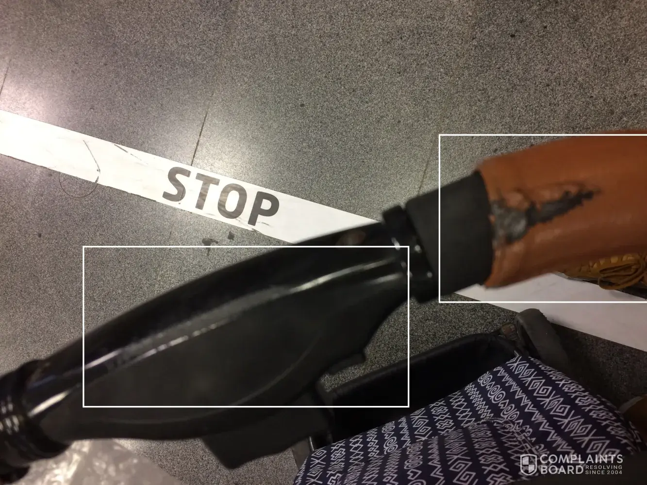 broken baggage and damaged baby stroller