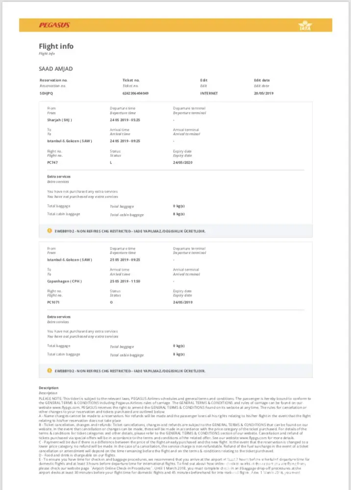 - My old pegasus air ticket