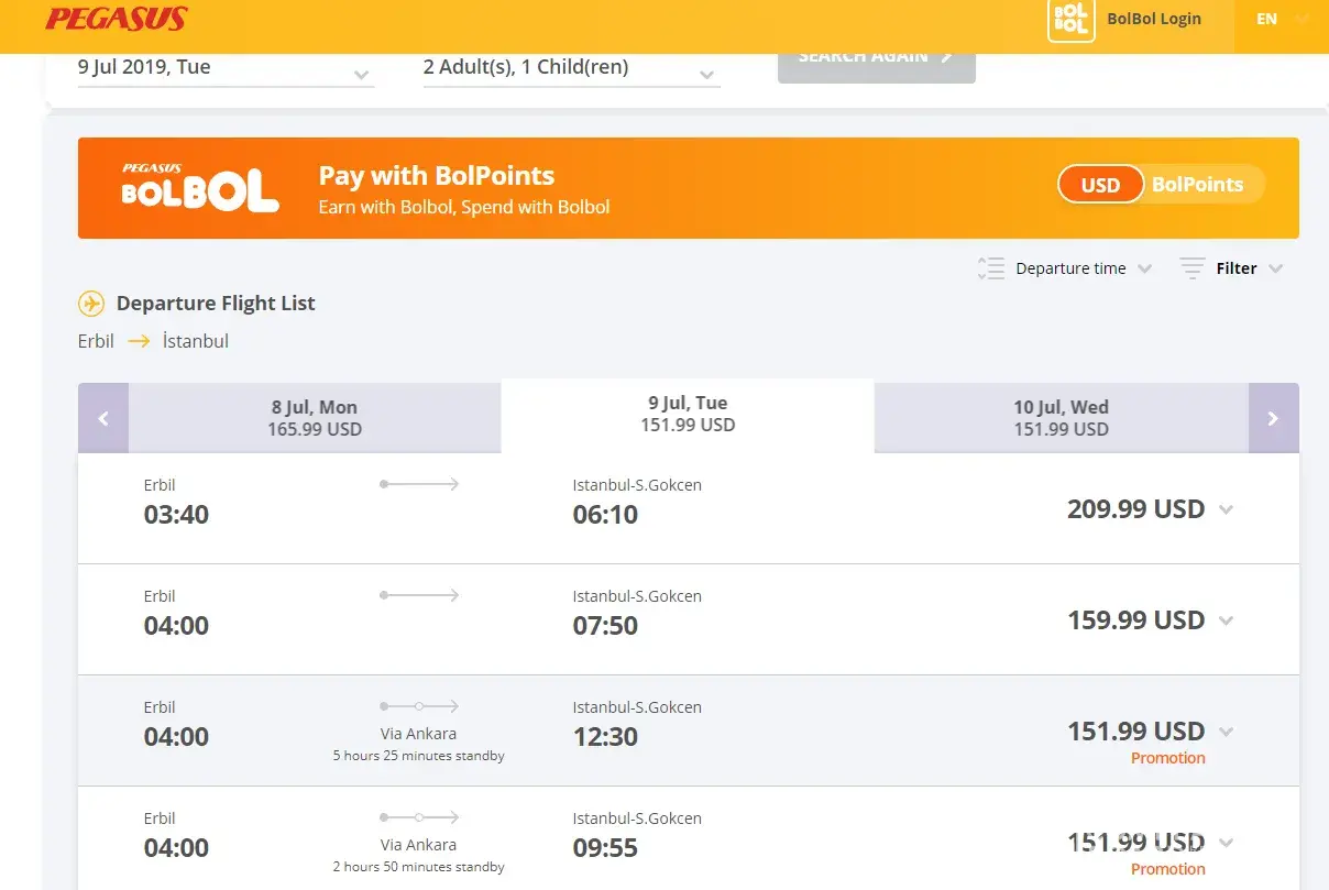 First of all your web-site showed the flight PC1703 was direct flight from Erbil/ Iraq to Istanbul/ Turkey. After I paid the money we received e- tickets showing there is one stop in Ankara, I'm not satisfied from your service at all this is called lie, I'm money and time just because of your web-site.