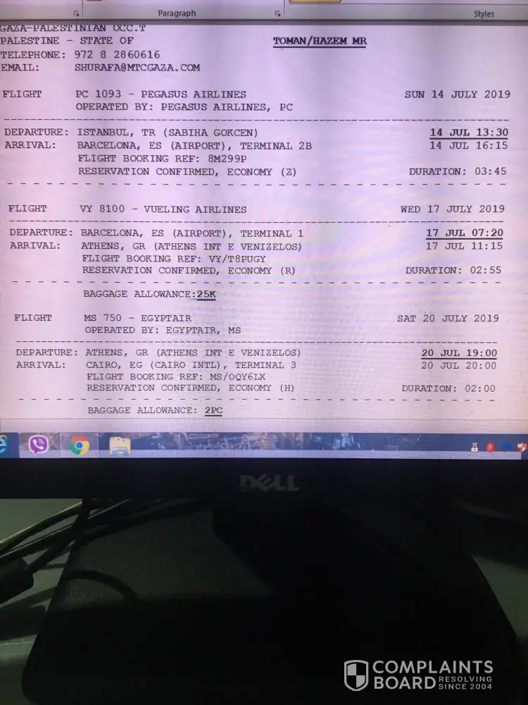 I have booked a ticket from Istanbul (Sabiha Airport) to Barcelona on 14th July 2019, flight no: BC1093. With reservation no: 8M299P- Pegasus airlines, the flight was supposed to depart from Sabiha airport at 13:30 to reach Barcelona at 16:15