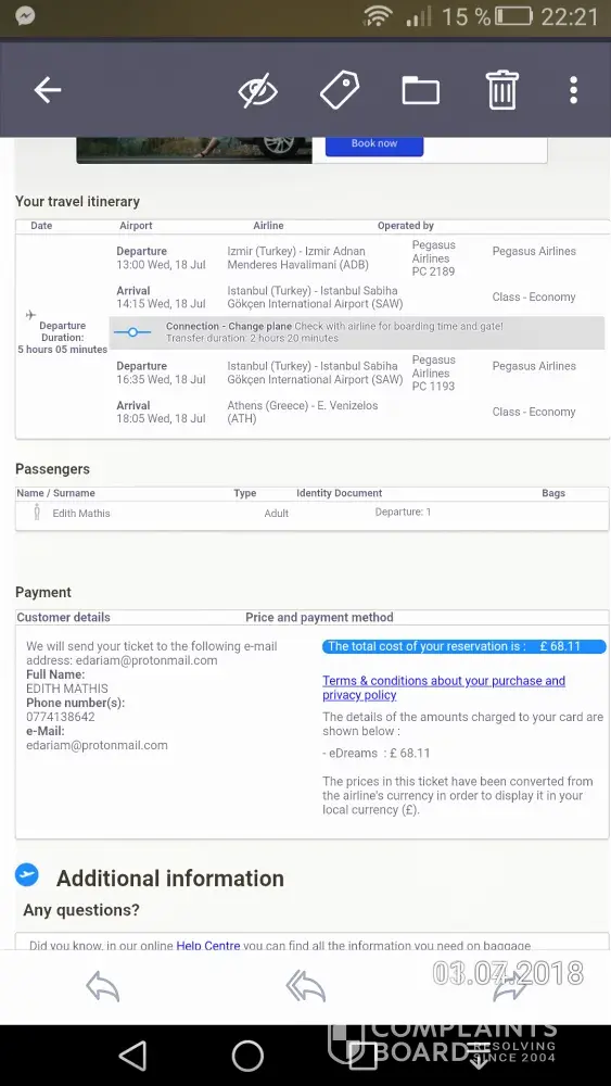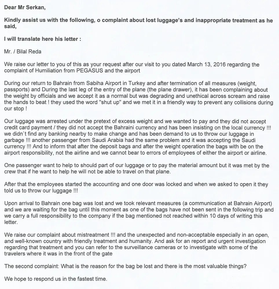 Now I'm complaining the Pegasus airline because of several reasons: