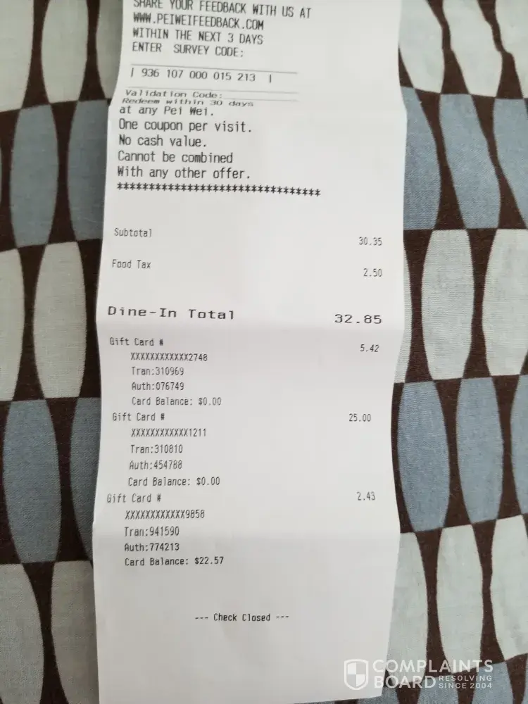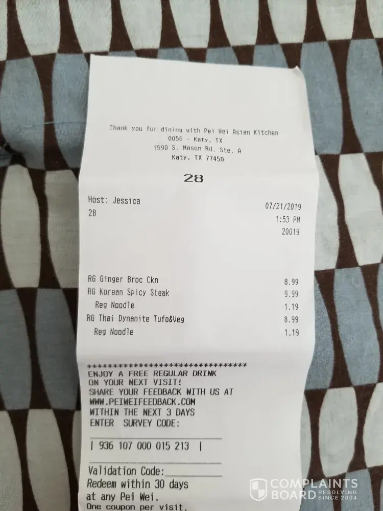 - While Pei Wei has a high level of trust, our investigation has revealed that the company's complaint resolution process is inadequate and ineffective. As a result, only 1% of 53 complaints are resolved. The support team may have poor customer service skills, lack of training, or not be well-equipped to handle customer complaints.