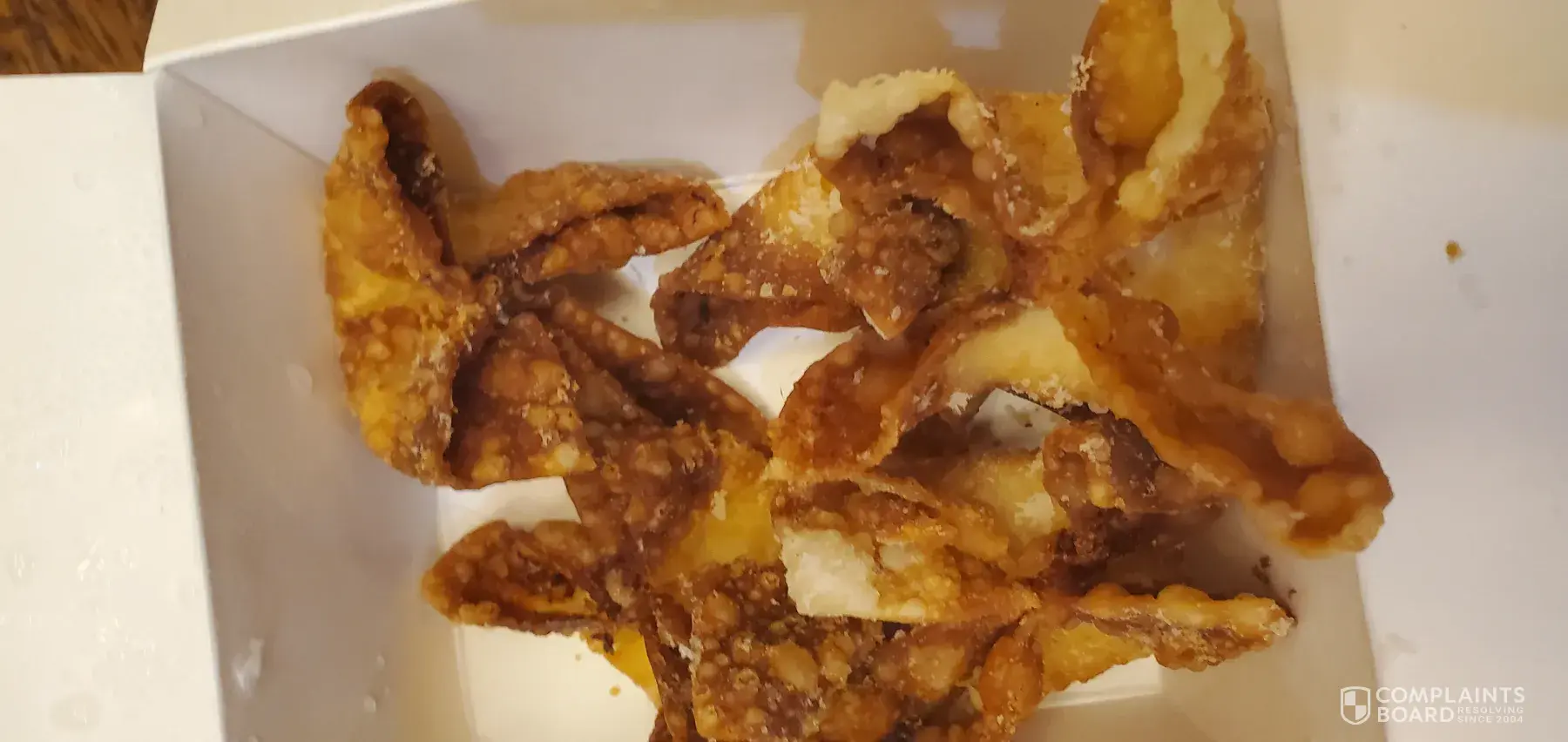 I have placed 6 orders in the past few months. 5 of them were either wrong, burned, overcooked, or the crab wontons were rotten and made me sick. I ate one reheated NON crispy wonton...threw out the rest as well as the egg rolls. I have spent over $300 in the past 6 months ordering from this location. $86 this last sunday night.