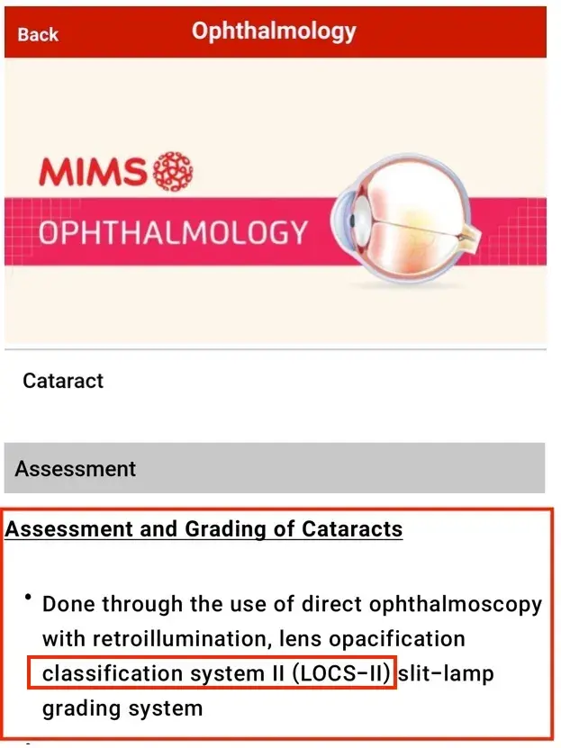c. after eye examination he asked to see my previous intra ocular pressure. but when shown details he said units were different. actually they were the same. he did not state current ocular pressure nor advise of cataract gradings "nc and no " etc. he proposed an iol which would give around -2.0. however this decision may be due to iol availability rather than correct decision. ( see later comments)