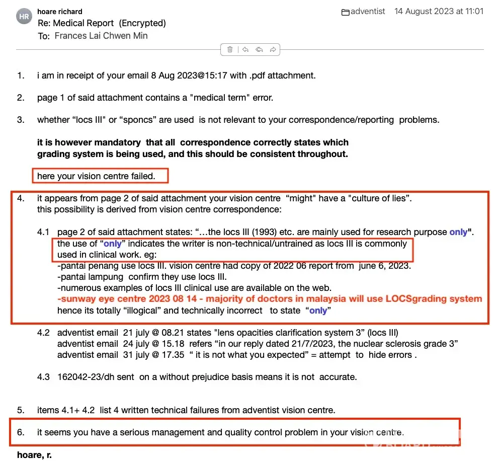 e. invoice was for 2 eye examination, but adventist refuse to give either orally or written information on cataract grading i.e. no/nc.