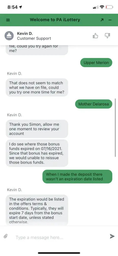 On 7/16 the PA withdrew $16 bonus money from my account. When I deposited my money the app did not state a specific expiration date or that the bonus was subject to an expiration. When I had a chat session Kevin D I explained what had happened and the lack of notification and he shared an URL with a generic policy and denied my request. Such expiration should be list upfront like that are in coupons. I feel like the PA lotto leadership stole $16 bucks from me and hid behind some deep hidden policy. I have been a long time customer, and you made feel feel that cheated. Pa lotto leadership lacks perspective and their support team reflects it. I hope they enjoy my $16.