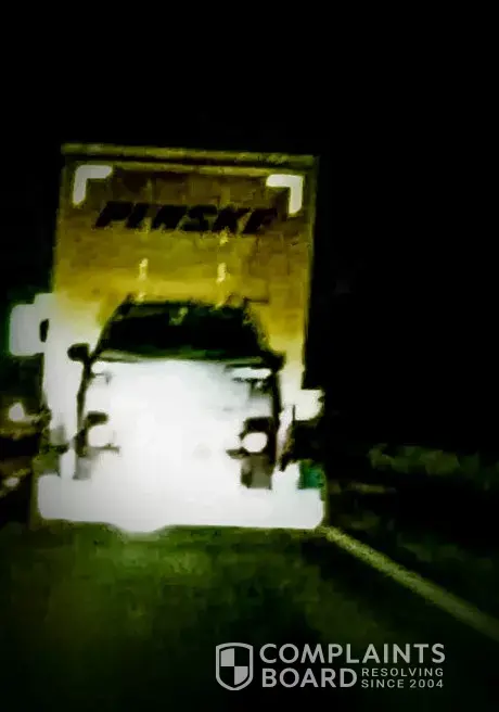I work for Penske. You can easily call 800-GO-PENSKE and let the customer service department know about your concern. Please note these are rental trucks and not driven by Penske drivers. They are most-often driven by consumers who are moving or commercial truck drivers working for a company other than Penske. Your best bet is to report any erratic driving problems to the local police so they can take action against the driver.