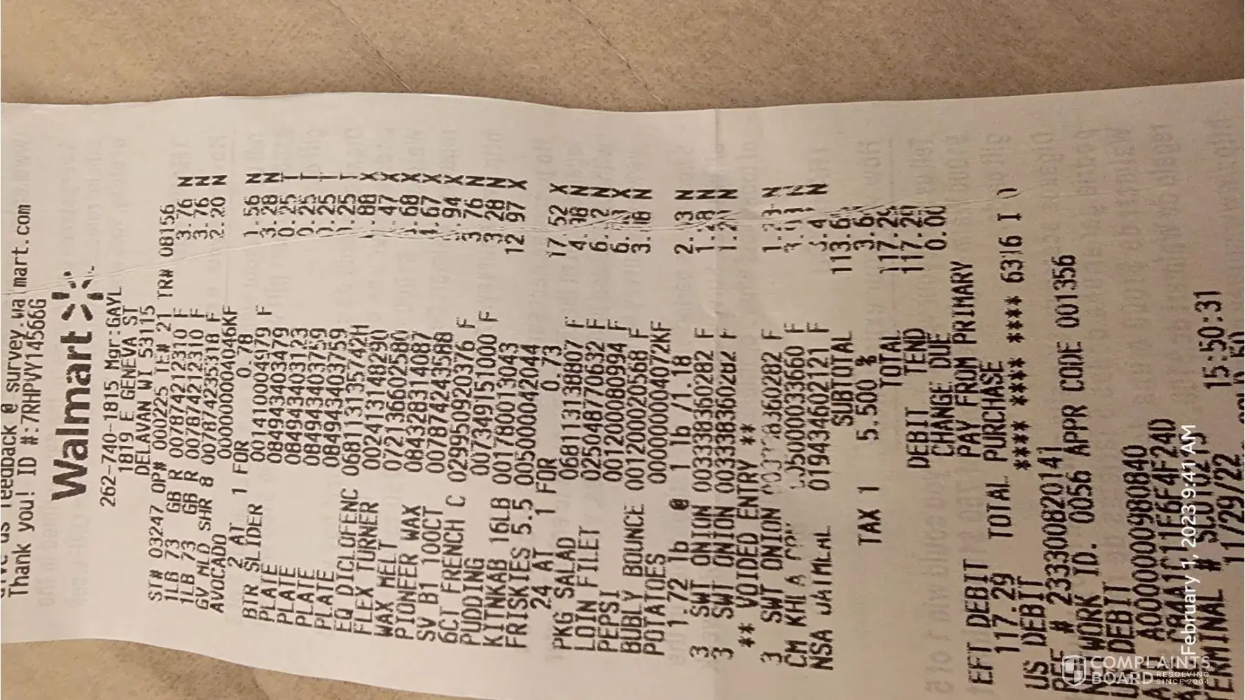 Purchased Pepsi from the Walmart in Delavan Wi. 11/29/2022 shown on receipt.