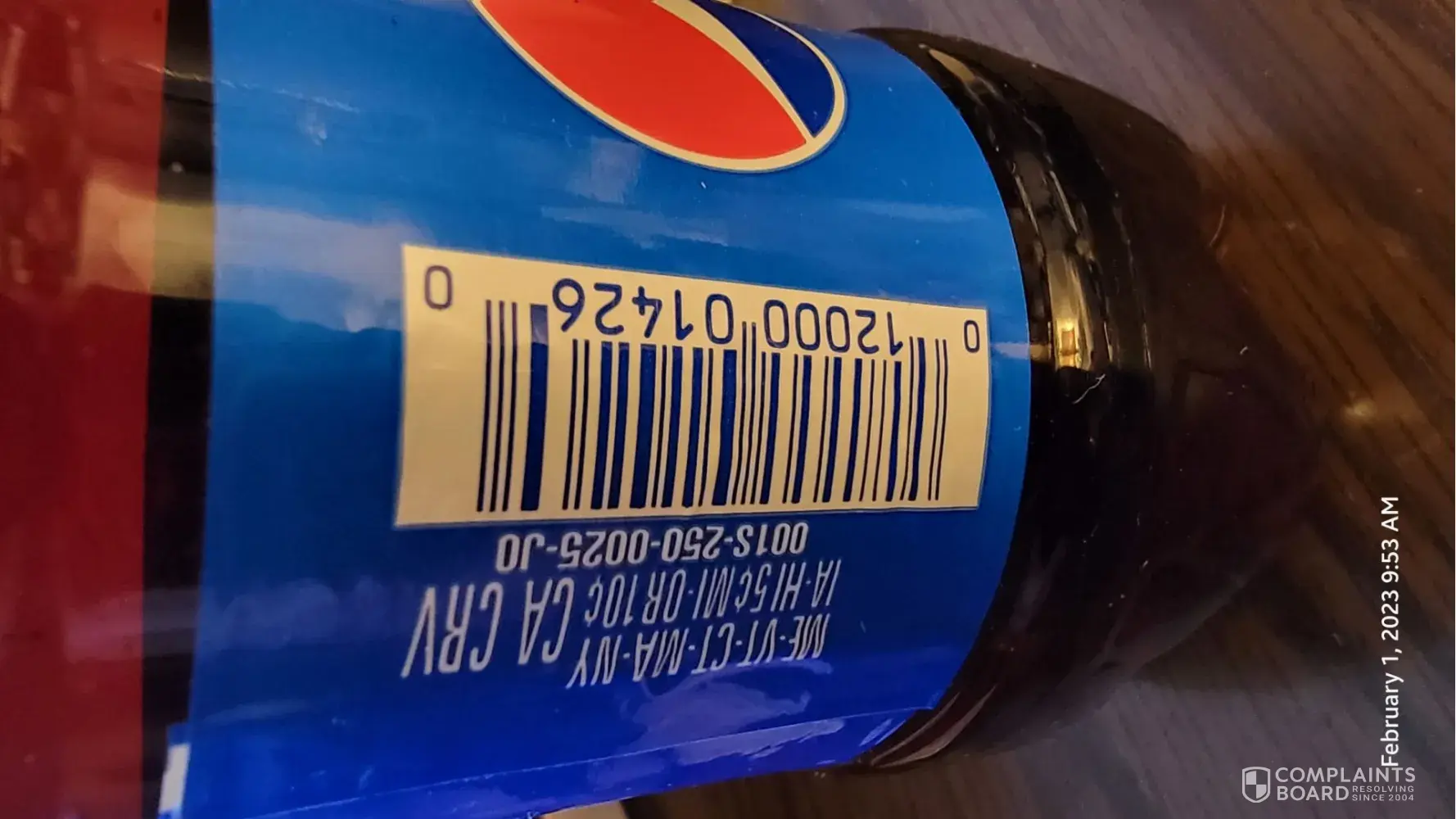 It might of course only be one bad batch of cans . So the bin I got it off of was at the Circle K in Newark Ohio 43055 UPC top number 020U-672-0000 , bottom number [protected] 2 . Then there is a number and letter sequence on the flap under the expiration date . Dec 26 22 - 0816C0062321B . It was in one of those 18 can cases of soda . I hope this is enough info for Pepsi to investigate if needed .
