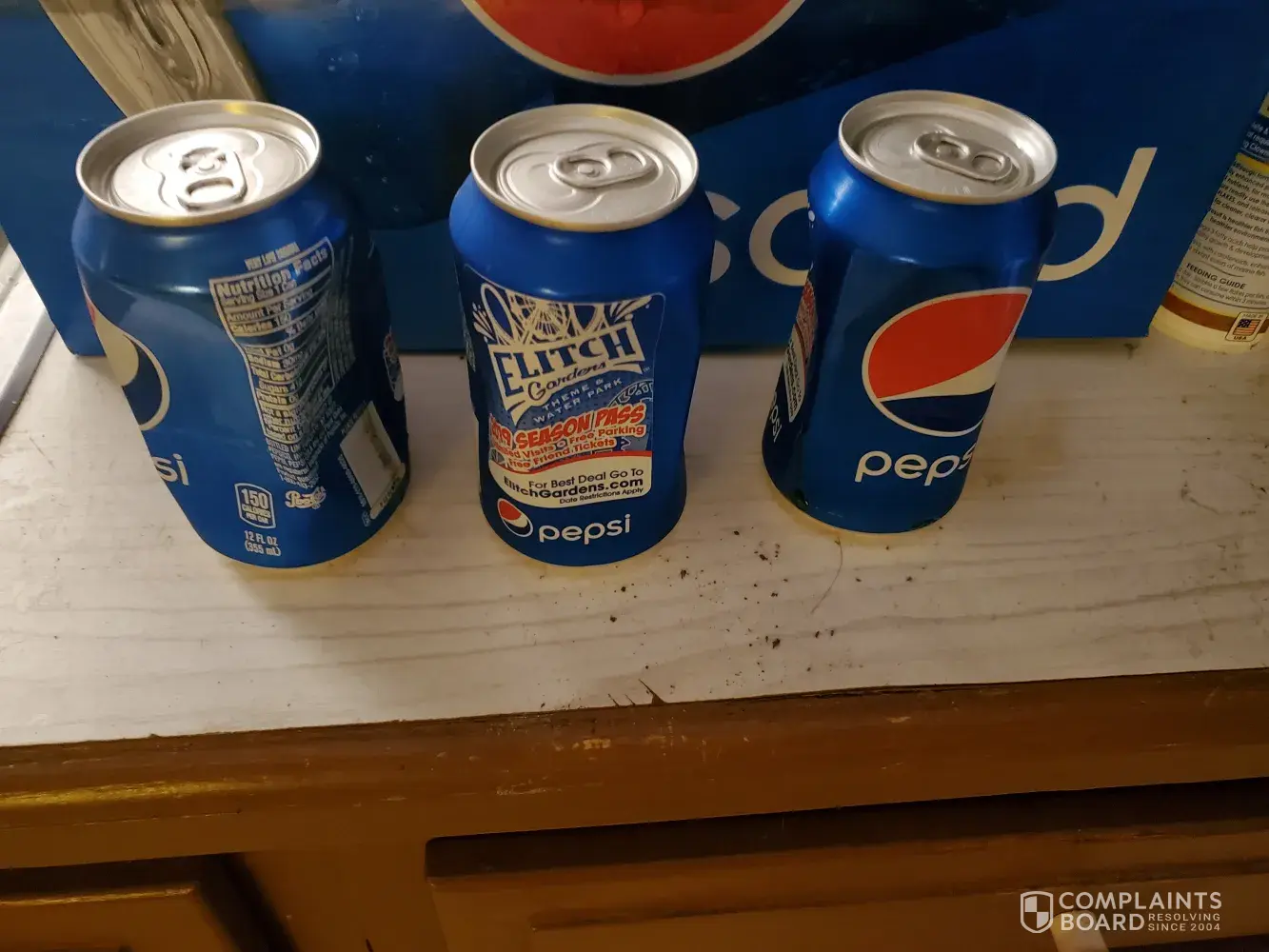 Pepsi is my drink..I go through a 12 pack every 2 days and this was what I got from my 12 pack I bought yesterday..my last 3 cans were almost completly empty and dented up but unopened and no spillage in the box. I have never filed a complaint like this before but 3 out of 12 is pretty unacceptable un my opinion and the kum and go where i bought them will not return them. I am enclosing some pictures i took.
