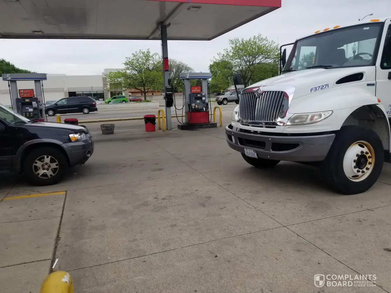 At 7:40 am driver pulls into our small gas station parking lot. Blocks customer parking completely at a very busy gas station. Says he will move and doesn't. Was asked 10 min later to move for employee to park. Does not move. Asked 10 min later to move so another employee can leave... refuses and then proceeds to swear and say I was being a [censored] and just having a bad day. Refuses to move. Takes another load in. When I took pictures he them backs up enough for me to squeeze out still blocking customer parking. Said he didn't give a [protected]@@k if I called his boss.