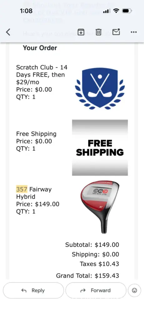 When you order a product from Performance Golf, they sneak in a line that says $0 due for a “Scratch Club†that then notes 14 days free and then $29 per month (see attached photo of invoice). When ordering a product (I ordered a golf club) you expect to pay for that and not to have other language that puts you into a club with monthly charges. Bad business practice!